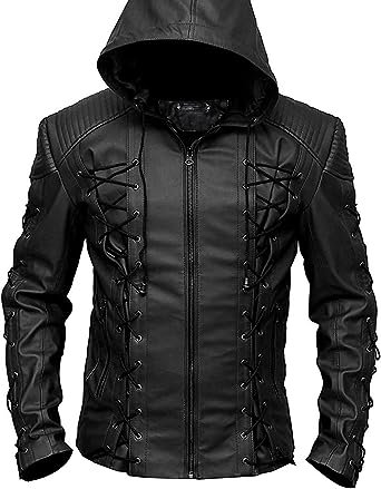 Arrow Black Biker Cosplay Costume Real Leather Jacket