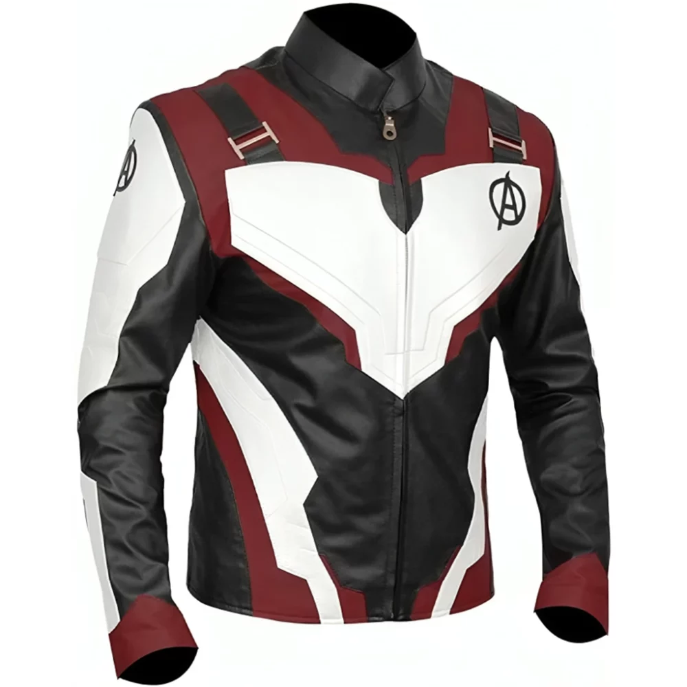 The Avengers Endgame Quantum Real Leather Jacket is a futuristic tribute to one of the most unforgettable team looks in the Marvel Universe. Inspired by the high-tech suits worn by the Avengers in Endgame, this jacket features a sleek combination of white, black, and red with the official Avengers insignia on the chest. Crafted from quality leather and lined for comfort, it captures the film-accurate detailing fans crave while offering a bold, wearable silhouette. Designed for cosplay, conventions, or stylish fandom expression, it reflects unity, courage, and the spirit of time-traveling heroism. Whether paired with jeans or worn as part of a full team ensemble, this jacket makes every appearance feel like a mission. For Marvel lovers seeking precision and flair in their apparel, this piece is the perfect blend of fantasy and fashion. The Avengers Endgame Quantum Realm Leather Jacket brings cinematic unity to your wardrobe, available at Party Jacket.