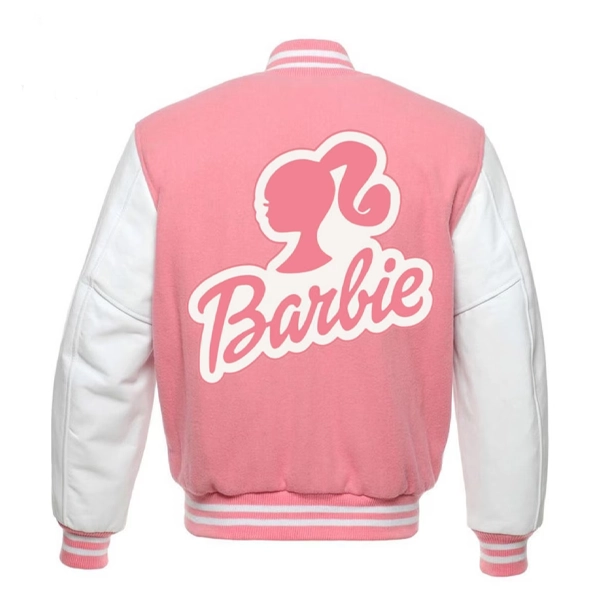 Barbie Pink and White Latterman Varsity Leather Jacket