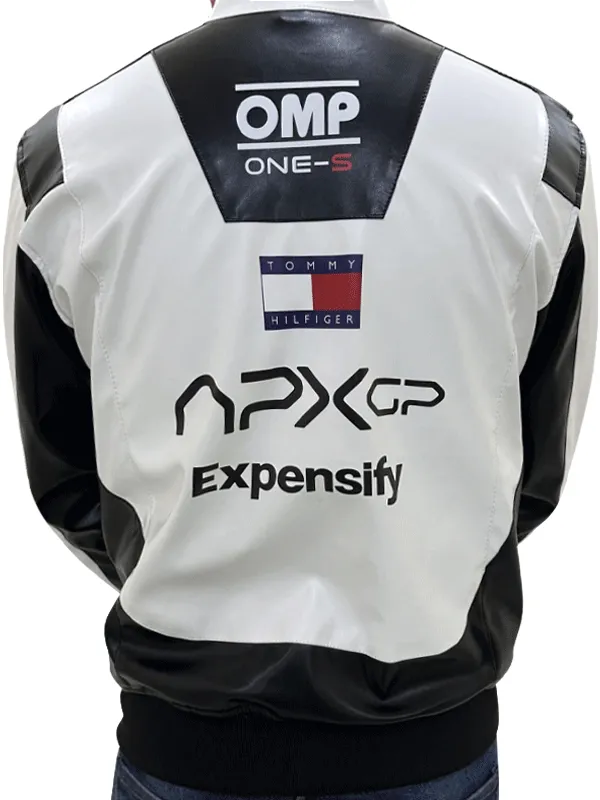Sonny Hayes Formula 1 Movie 2025 Brad Pitt White APXGP Racer Leather Jacket