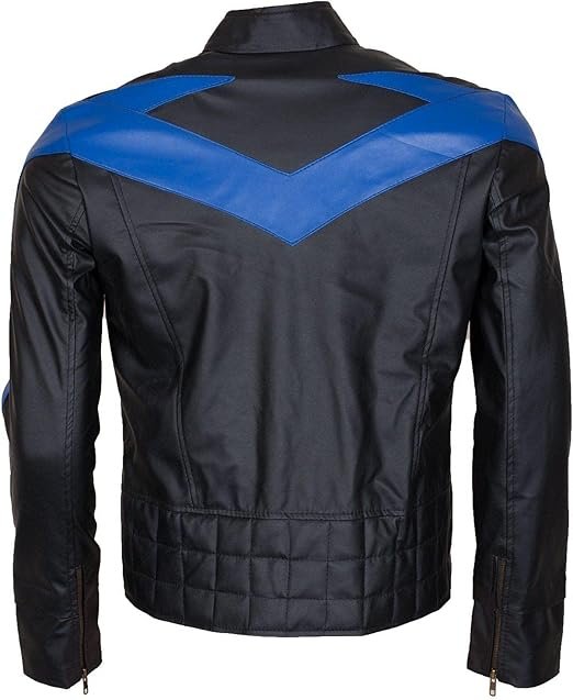 The Dick Grayson Nightwing Cosplay Leather Jacket channels the fearless energy of one of DC Comics’ most iconic vigilantes, making it a standout piece for superhero fans and cosplayers alike. Designed with a sleek black base and the signature bold blue “wing” emblem across the chest and shoulders, this jacket mirrors Nightwing’s sharp, modern look. Whether made from genuine or high-quality faux leather, it delivers durability, comfort, and an attention-grabbing silhouette. The fitted structure, stand-up collar, and front zipper closure stay true to the original design, giving wearers an authentic yet wearable version of the hero’s costume. Whether you’re heading to a convention, gearing up for Halloween, or simply expressing your fandom through fashion, this jacket makes a heroic statement. With its clean lines and striking detail, it’s an essential for anyone ready to suit up like Gotham’s protector, available at Party Jacket.