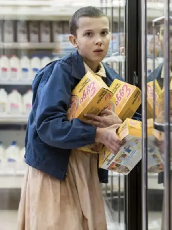 The Millie Bobby Brown Stranger Things S01 TV Series Eleven Blue Cotton Jacket, channels mystery, innocence, and quiet strength, inspired by Eleven’s unforgettable journey in Stranger Things Season 1. This blue cotton jacket mirrors her unique blend of vulnerability and power, representing a timeless symbol of resilience and discovery. Its simple yet classic design captures the nostalgic 1980s aesthetic, blending everyday wearability with character-driven charm. Perfect for fans who adore iconic TV fashion, it reflects the transformation of a girl destined to become a legend. The lightweight cotton material ensures comfort and versatility, making it suitable for all seasons. Whether paired with casual outfits or statement pieces, it adds a touch of retro authenticity and cinematic nostalgia. Step into the supernatural world of Hawkins, where style meets storytelling, and let this jacket remind you of Eleven’s strength, courage, and individuality. A tribute to her legacy and timeless fashion appeal, available at Party Jacket.