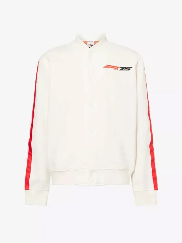 F1’s 75th Anniversary Classic Embroidered White Cotton Varsity Jacket