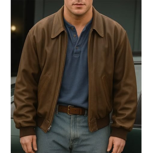 The Channing Tatum Roofman 2025 Jeffrey Manchester Brown Leather Jacket, embodies rugged sophistication and cinematic intrigue. Inspired by Jeffrey Manchester’s distinctive look in Roofman, this jacket merges classic bomber aesthetics with timeless leather appeal. The rich brown tone delivers warmth and depth, reflecting the balance between strength and subtlety. Perfect for men who appreciate adventure-driven fashion, this piece captures the essence of bold confidence and effortless cool. Its versatile design transitions smoothly from daywear to evening style, making it an essential addition to any wardrobe. Whether you’re dressing for a night out or an urban adventure, this bomber jacket stands as a symbol of resilience and charisma. The combination of vintage charm and modern fit makes it a true standout for any season. Channel the cinematic allure of Roofman and embrace a style that speaks of power and sophistication, available at Party Jacket.