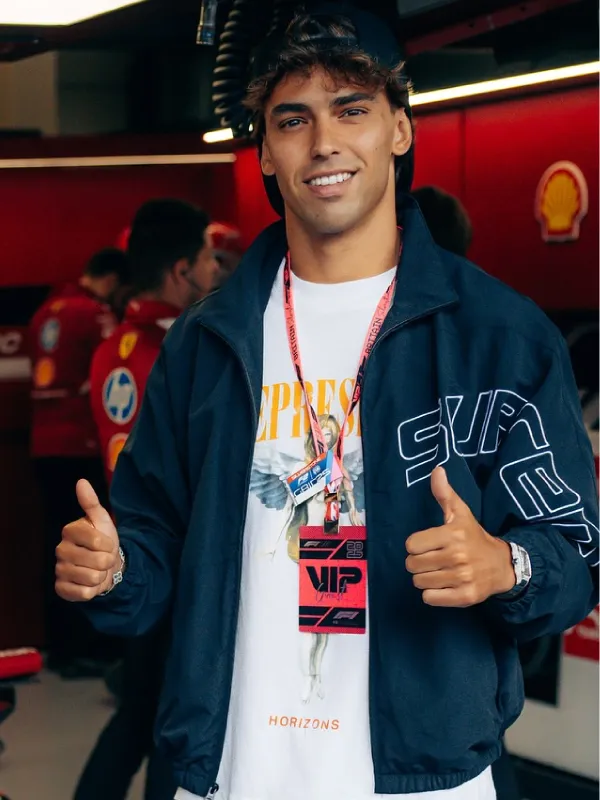 The Formula 1 Silverstone Circuit British Grand Prix 2025 João Félix Black Track Jacket merges the world of elite sports with the electric atmosphere of Silverstone’s legendary racing environment. Inspired by João Félix’s stylish appearance at the event, it blends modern athletic energy with the timeless excitement associated with the British Grand Prix. Its striking black design conveys confidence, precision, and contemporary flair, making it ideal for fans who appreciate crossover moments between football culture and motorsport excellence. Perfect for casual wear, events, or sports-inspired styling, it reflects the unity of two high-performance worlds driven by ambition and passion. This jacket stands as a reminder of unforgettable appearances, high-speed drama, and iconic personalities coming together in a global sporting celebration. The Formula 1 Silverstone Circuit British Grand Prix 2025 João Félix Black Track Jacket, available at Party Jacket.