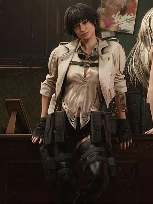 Lady Devil May Cry 5 White Leather Jacket