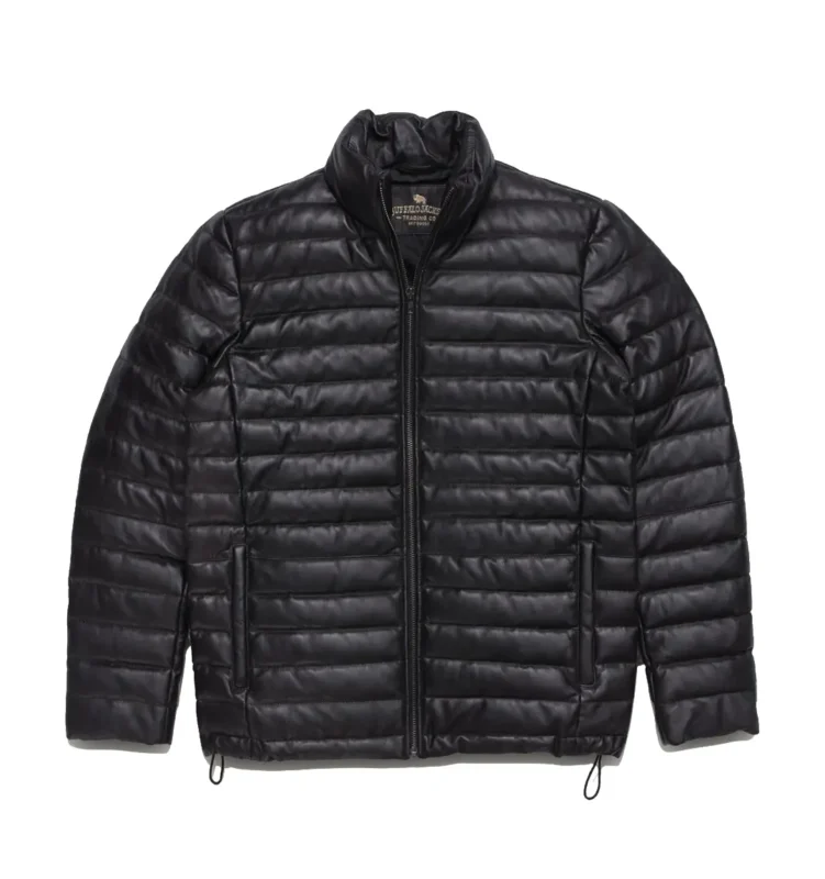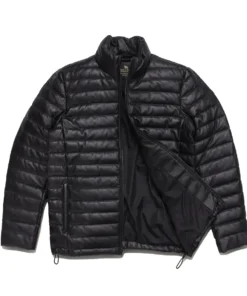The Bridger Black Real Leather Puffer Jacket is the ultimate cold-weather essential that merges bold fashion with rugged performance. Crafted from genuine leather, this jacket boasts a sleek, all-black exterior that adds instant edge to any outfit, while its insulated puffer design ensures superior warmth during chilly days. The soft inner lining enhances comfort, and the high-collar structure along with the smooth front zip closure offers added protection against the wind. With its spacious pockets and tailored fit, this jacket is as practical as it is stylish, making it perfect for both daily wear and weekend escapes. Whether you’re navigating city streets or heading out on a winter getaway, this piece delivers standout versatility with a sharp, masculine silhouette. Built to last and designed to impress, it redefines winter outerwear with premium craftsmanship and effortless style. Elevate your look with this iconic staple, available now at Party Jacket.