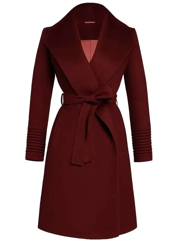 Katherine Walter My Life with the Walter Boys Sarah Rafferty Maroon Woolen Trench Coat