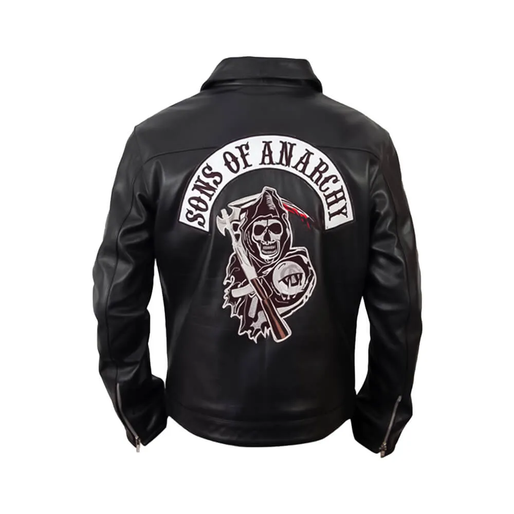 The Sons of Anarchy Black Biker Leather Jacket pays powerful homage to the gritty outlaw brotherhood that redefined television and biker culture. Inspired by the infamous SAMCRO crew from Sons of Anarchy, this jacket is made from high-quality leather and cut for a rugged yet comfortable fit, with a shirt-style collar, front zip closure, and bold patch detailing that captures the look seen on-screen. Its tough exterior and functional design, including spacious pockets and reinforced stitching, make it ideal for both real rides and everyday rebellion. Whether you’re a motorcycle enthusiast or a devoted fan of the show, this jacket lets you channel the raw, untamed energy of Jax Teller and his crew. From club loyalty to street-ready style, this piece symbolizes brotherhood, defiance, and a life lived on the edge. The Sons of Anarchy Black Biker Leather Jacket is your ride-or-die statement, available at Party Jacket.