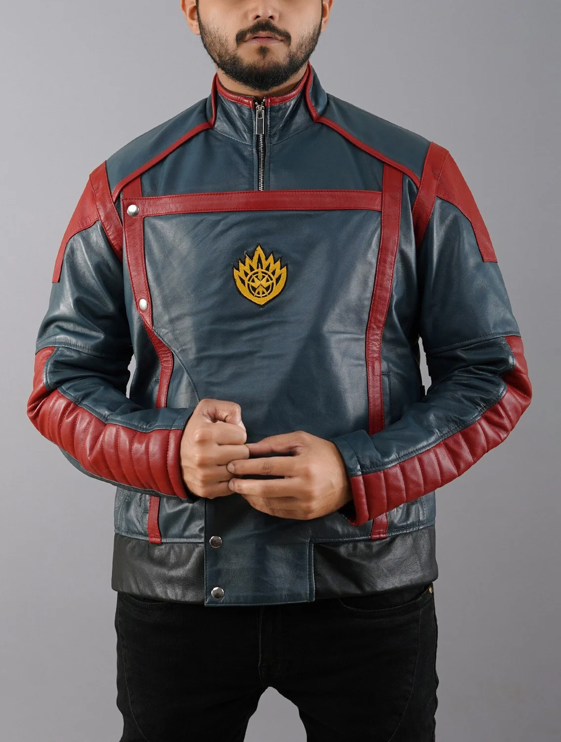 The Star Lord Guardian of The Galaxy Volume 3 Leather Jacket is a striking evolution of Peter Quill’s style, blending bold colors with cosmic charisma. Inspired by Guardians of the Galaxy Vol. 3, this premium leather jacket features a dynamic blue and red color scheme, stand-up collar, signature paneled design, and front zip closure that replicates the look seen on-screen. Worn by Chris Pratt as Star-Lord, this outerwear is tailored for fans who want to channel the fearless energy of the Guardians on their latest adventure. Whether you’re suiting up for cosplay, attending a themed event, or simply adding bold edge to your wardrobe, this piece delivers cinematic flair with everyday wearability. The structured fit, high-quality craftsmanship, and screen-accurate detail make it a must-have for Marvel collectors and fans alike. The Star Lord Guardian of The Galaxy Volume 3 Leather Jacket is your next-level fandom look, available at Party Jacket.