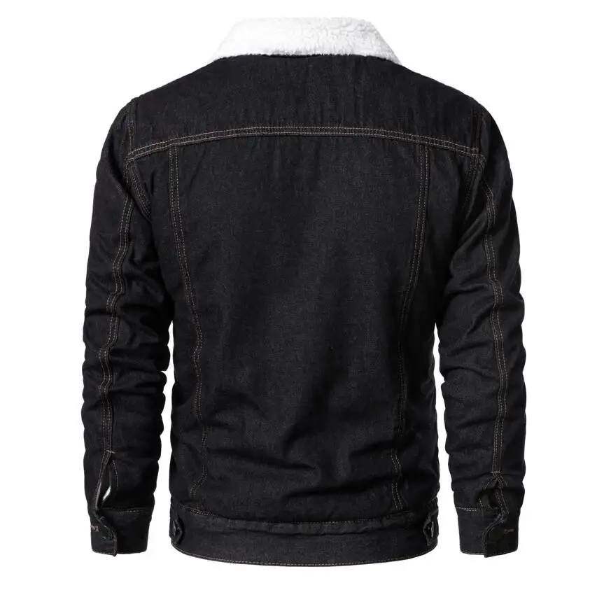 Black Denim Jacket with Pocket Style Shearling Jeans Trucker Jacket